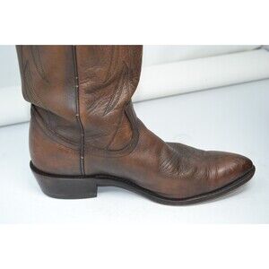 Introducing the Frye Bruce Pull On Western Leather Boot in dark brown, size 10 for men. This artisan-stitched boot features a mid-calf shaft style with a pull-on closure, making it perfect for any occasion, whether it be casual, formal, or for workwear. The leather outsole and lining material ensure durability and comfort, while the leather insole adds an extra touch of luxury. The boot is handmade in Mexico and is part of the Frye Campus product line. Its unique Western style and artisan stitching pattern make it a one-of-a-kind addition to any collection. Whether it's winter, summer, fall, or spring, this boot is sure to be a versatile addition to any wardrobe.