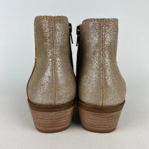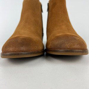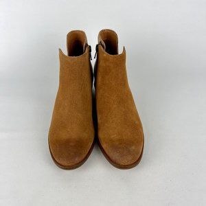 Frye Caden Womens Suede Notched Ankle Bootie Cognac Tan Metallic Heel size 6