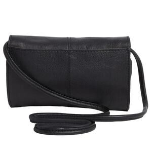 Slim crossbody can be carried as purse, wallet or clutch