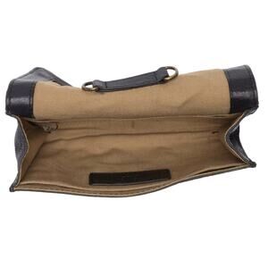 Strap detaches under the flap so D-rings don't show when carrying as a clutch