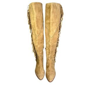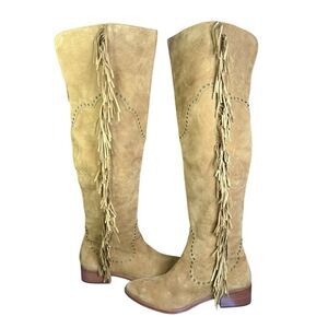 Frye Camel Brown Suede RAY Fringe Zip Over the Knee Boot Sz 10 M
