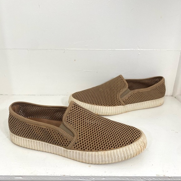 Frye Camille Perforated Leather Slip On Sneakers Ivy Brown Saddle Tan Ash Sz 9.5
