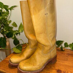 Frye Campus Banana Boots 7 Yellow Square Toe 14L Marble Perfectly Broken In