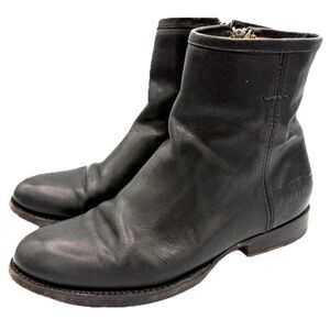 Frye Campus Zip Ankle Boots Women 7B Black Leather Round Toe Western Minimalist