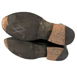 Preowned — normal wear (see photos). Leather uppers show creasing and light scuffs. Zippers function smoothly. Soles/heels worn but plenty of life left.