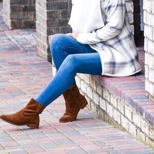 Frye Cara Short Suede Slouchy Boot in Wood 7