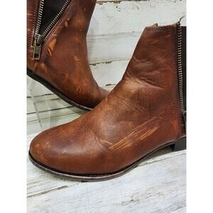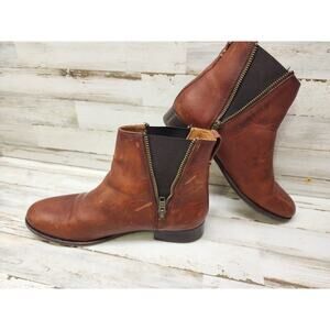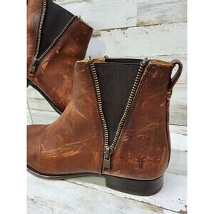 Frye Carly Casual Chelsea Ankle Boots Womens Size 9 B Cognac Brown Leather Zip