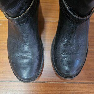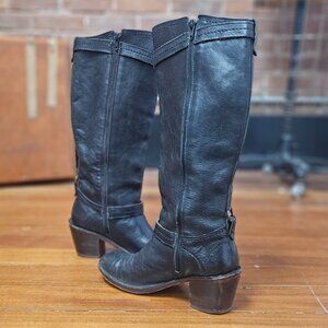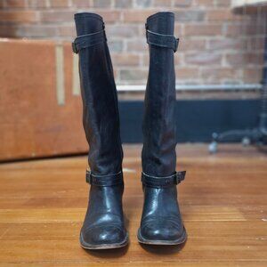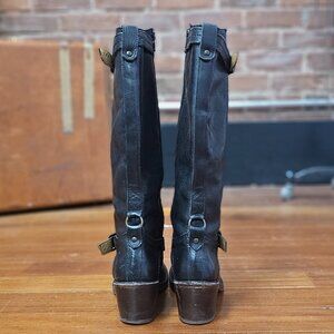 Frye "Carmen" Black Leather Knee High Harness Boots Size 7