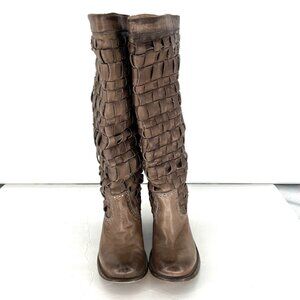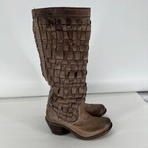 Frye Carmen Woven Tall Western Riding Boots Size 6.5 Brown Leather Studded