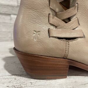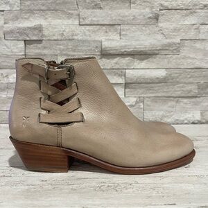 Frye Carson Belted Womens Size 6.5 Leather Ankle Bootie Boot Latte NEW