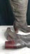 Beautiful, soft, distressed leather upper and vamp, glove leather liner, burnished toe, leather sole with added rubber protector, pull on entry.