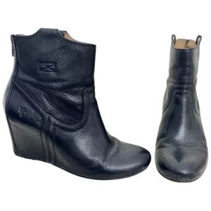 Frye Carson Hidden Wedge Leather Ankle Booties Black Size 8