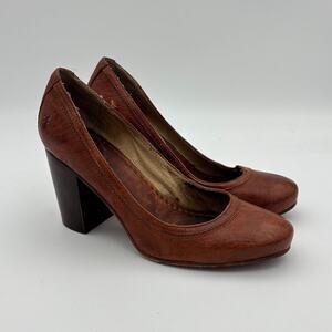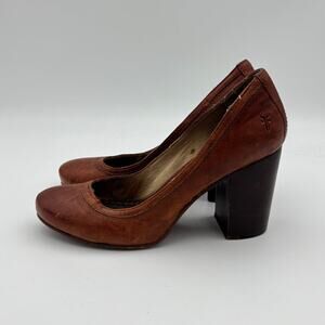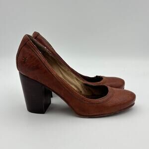 Frye Carson Leather Round Toe Stacked Heel Pump Women's 8.5M.