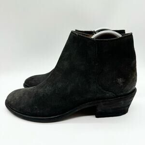 Frye Carson Piping Boho Bootie Distressed Ankle Boot In Black Suede Size 7.5