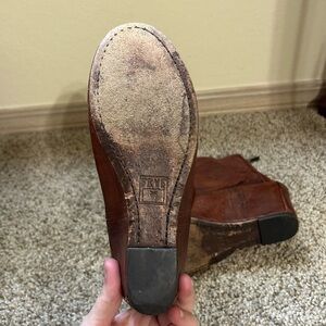 Frye Carson Wedge Cognac Brown Leather Ankle Booties Women’s Size 6 Zip Up Heel