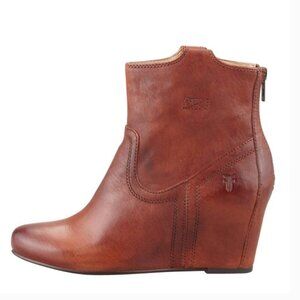 Frye Carson Wedge Cognac Leather Ankle Bootie Size 8.5