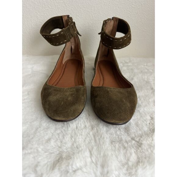 Frye Carson Womens Suede Leather Zip Back Ankle Strap Ballet Flats Size 7.5