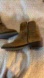 This is a Frye Hannah Engineer suede ankle boot in a cashew or tan color.