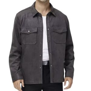 Frye Charcoal Gray Mens Faux Suede Snap Front Trucker Style Shacket Size XL NWT
