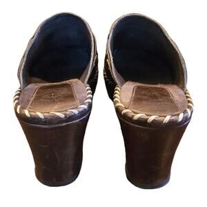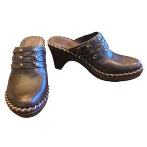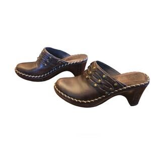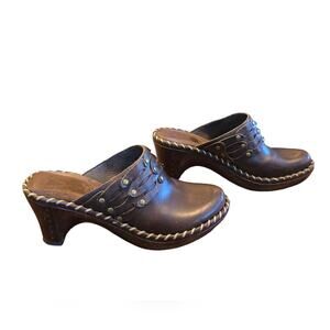 Frye Charlotte Boho Mule Clog Size 9 Brown Leather Whipstitch 3" Heels 70850