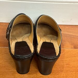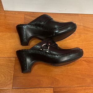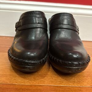 Frye Charlotte Ring Mules Clogs Slip on Black Leather 70771 Womens Size 8.5 in excellent condition like new.