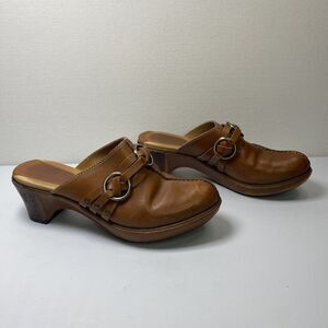 Frye Cheryl Triple Ring Harness Mules Clogs Brown Leather Slip On Shoes Size 8