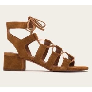 Frye Chrissy Side Ghillie Cognac Tan Cognac Suede Lace Up Heeled Sandals