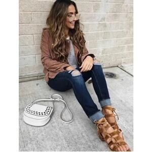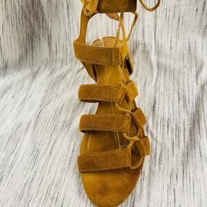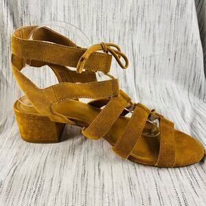Frye Chrissy Side Ghillie Cognac Tan Cognac Suede Lace Up Heeled Sandals Sz 9.5