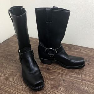 Authentic Frye classic black harness boot with metal hardware. Excellent used condition, only worn a couple times.