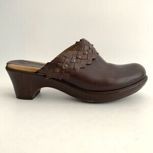 Frye Clogs Leather Slip-on Chunky Braid Studs Logo Shoes Brown 10