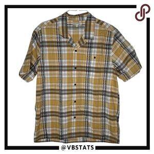 Frye & Co Gold/Black/White Plaid SS Button Down Top in Size XL