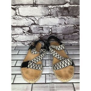 Frye & Co Kole White Black Asymmetrical Espadrilles Sandals Women Sz 8.5M US/39