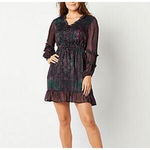 Frye & Co LS Floral Fit & Flare Button Front Dress Medium