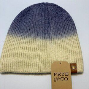 Frye & Co NWT Deep Indigo Dip Dye Beanie Denim Blue Butter Creamy Tan Hat-OSFM.(MSRP-$26)