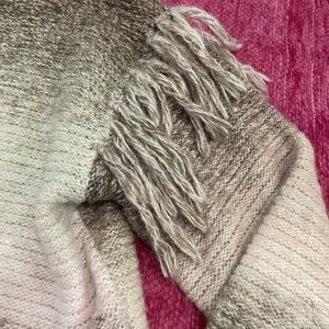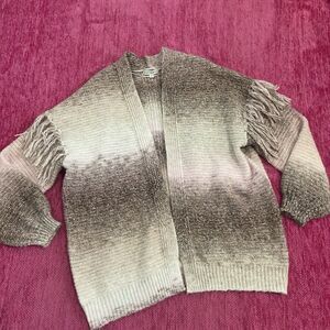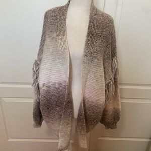 Frye & Co. Open Front Fringed Cardigan Sweater Space Dye Ombré Tan Pink Cream XL