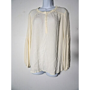 Frye & Co Top Shirt 1X White Gauzy Boho Peasant Ruffle Balloon Sleeve
