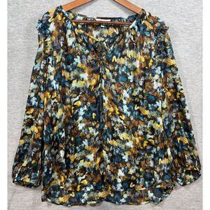Frye & Co Womens Floral Print Semi Sheer Peasant Blouse 3X Floral