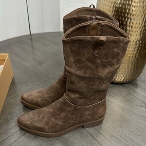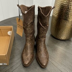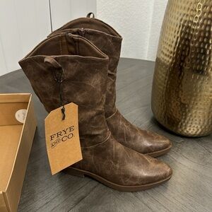 Frye & Co Womens IVIE BROWN stacked heel cowboy boots