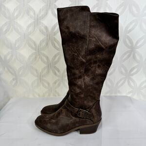 Frye & Co Womens Jaimey Brown Stacked Heel Riding Boots Size 7M