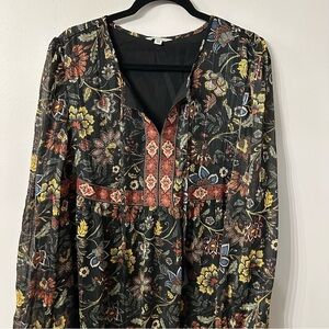 Frye & Co. Women’s Long Sleeve Black Floral Boho Flowy V Neck Dress Sz XXL GUC