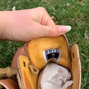 Frye booties with a 2.5” heel. Super comfortable to wear all day. Love to pair with a dress in the spring or jeans in the fall! Originally $398