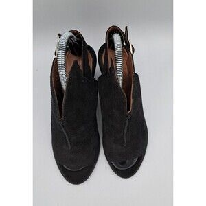 Frye Courtney Black Suede Peep Toe Heeled Booties Women's Size 9B