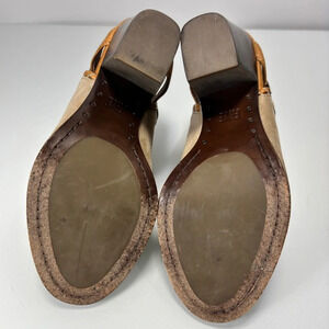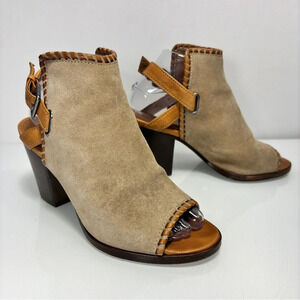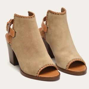 Frye Dani Shield Beige Whipstitch Peep Toe Sling Back Heeled Sandals Size 7.5