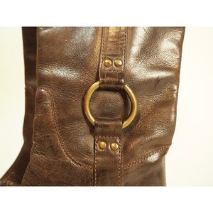 Frye Dark Brown Leather Buckle Pull-On Cowboy Boots, Size 6 (US)