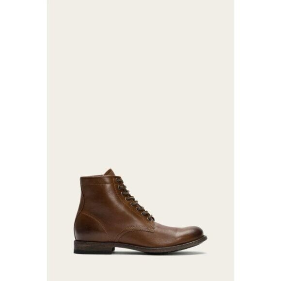 Frye Dark Brown Leather Lace-Up Moto Combat Tyler Boots