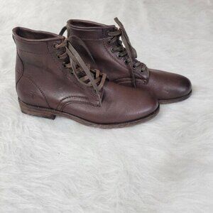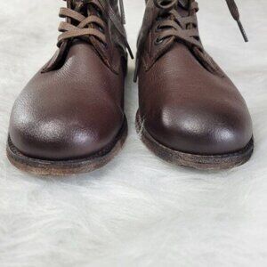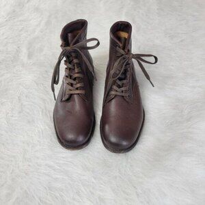 Frye Dark Brown Leather Lace-Up Moto Combat Tyler Heeled Boots 6B