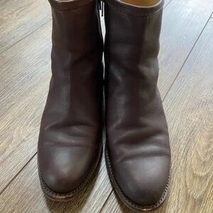 Excellent condition Frye dark brown bootie. Inner zipper, easy on easy off. Very well cared for and treated regularly with Frye conditioner. Purchased from authorized Frye retailer. Size 8.5.