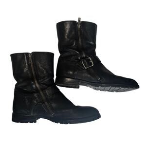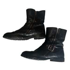 Frye Dean Engineer 87151 Black Leather Moto Ankle Boots Zip Buckle Strap Men’s 7D (Women’s 8.5–9)