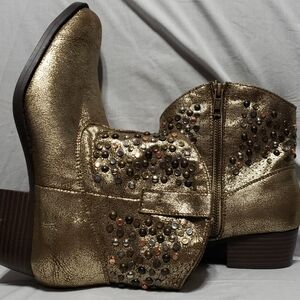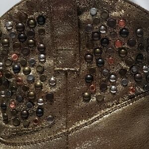 Super cute like new condition gold studded ankle boots by frye size 4 cowboy boot heel distressed gold color Deborah model