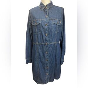 Frye Denim Shirt Dress Medium Blue Jean Button Front Long Sleeve Pocket NWOT